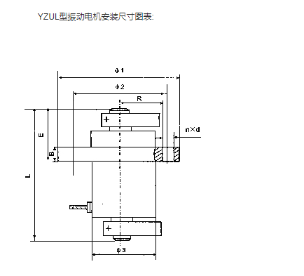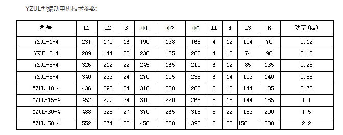 YZUL系列立式振動(dòng)電機(jī)技術(shù)參數(shù)及外形尺寸表: